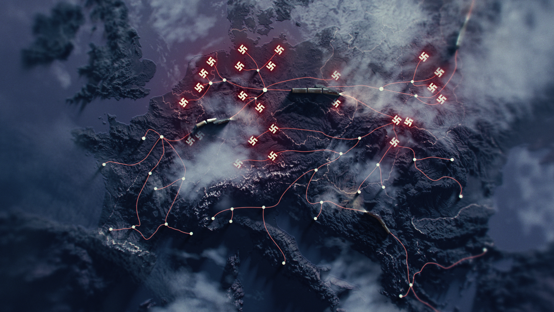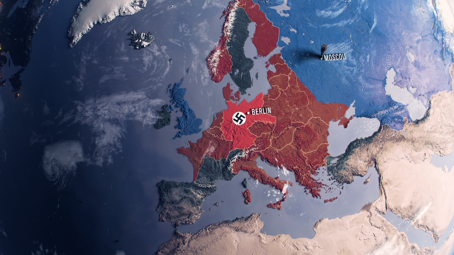 Réalisation d'animations cartographiques et de scènes clés en bullet time pour le documentaire « 1939-1945 : et le monde bascule » (France 2). Au sein de l'équipe Motionorama, j'ai conçu ces visuels pour traduire techniquement les enjeux historiques et les mouvements stratégiques du conflit
