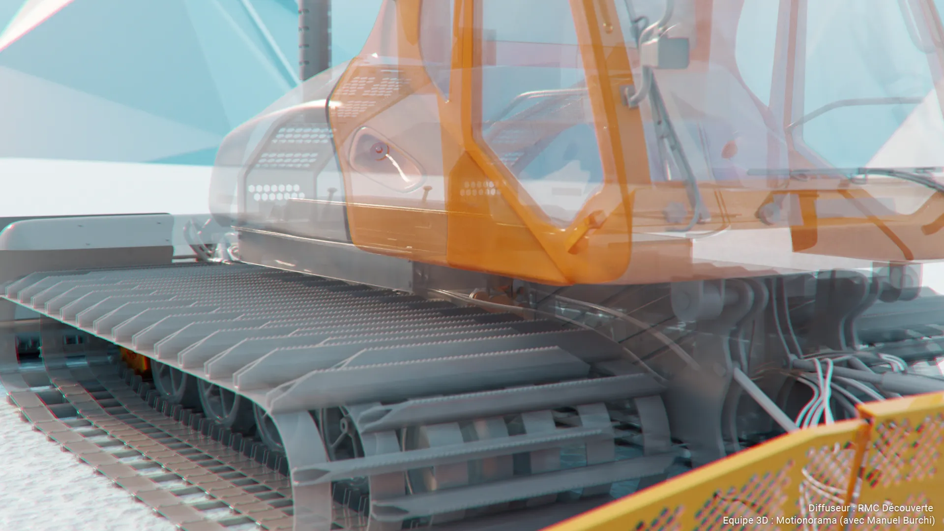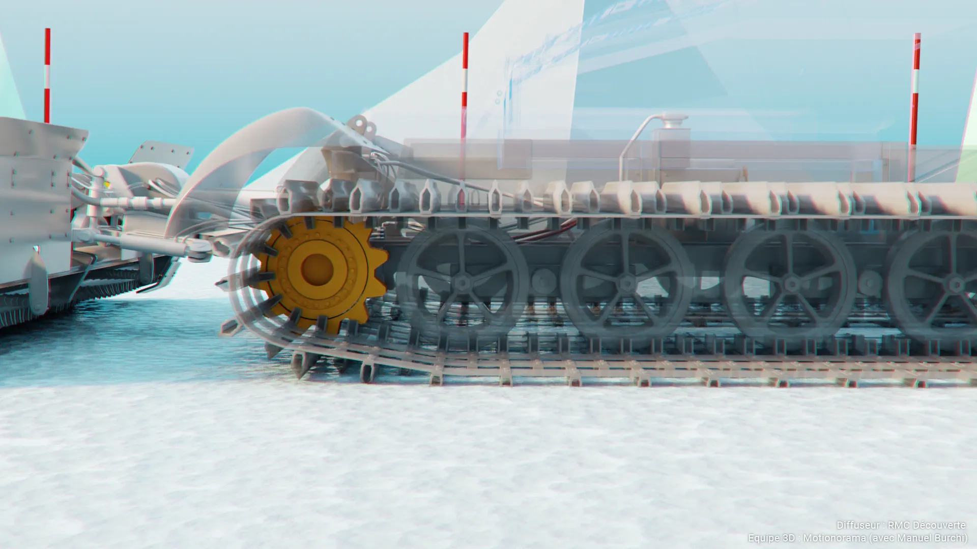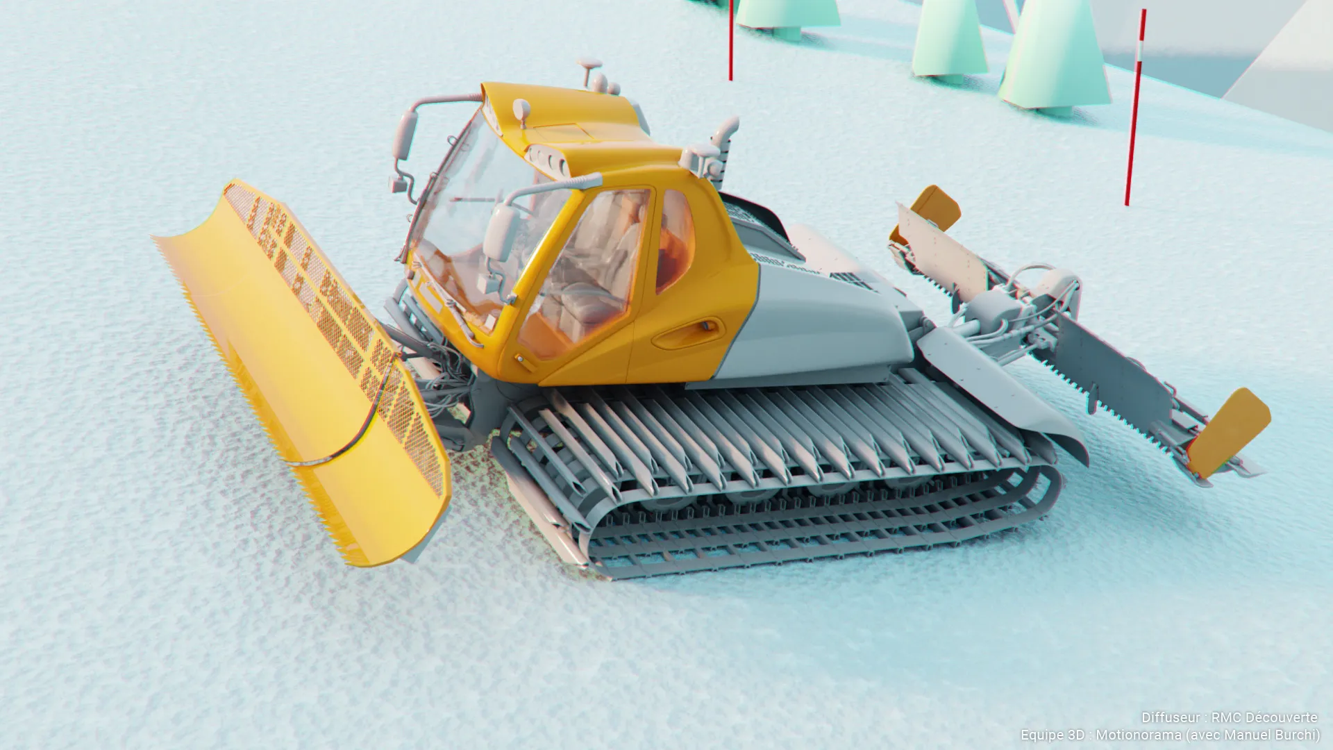 Collaboration avec le studio Motionorama pour la création des séquences 3D du documentaire Titans des neiges, diffusé sur RMC Découverte.
